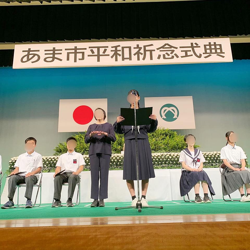 平和祈念のことばとして、戦時下で失われた尊い命に哀悼の誠を捧げ、戦争の記憶と恒久平和の願いを次世代に継承することを誓いました。