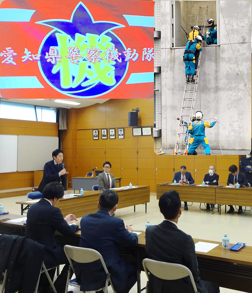 小牧市にある県警警備部の機動隊、246名が水難救助・レスキュー・銃器・爆発物・NBC(核・バイオ・ケミカル)などの部隊に在籍。