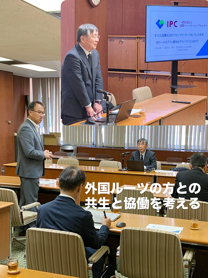 愛教大名誉教授、国際パートナーシップセンターの代表理事 土屋武志先生をお招きしてのあいち民主県議団多文化共生議連勉強会。