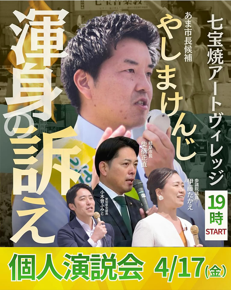 みなさんと同じ目線で話を聞いてまわり、そしてあま市のこれからを真っ直ぐに見つめて訴える。
